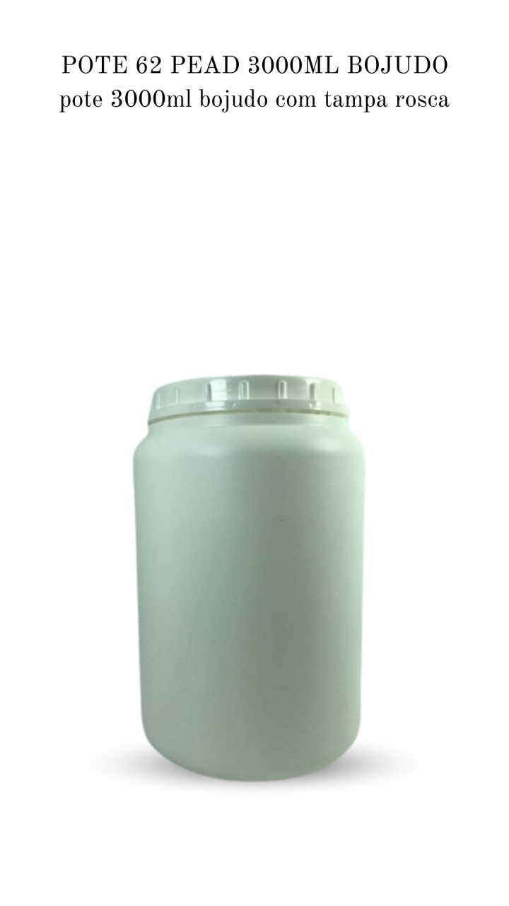 62- Pote 3000ml branco Tampa rosca lacre - PEAD POTES Código: 62 Cor: Branco   Descrição: Pote 3000ml bojudo Branco com tampa rosca lacre Branca - PEAD  POTE Bojudo Em PEAD com Tampa Lacre. Volume: 3000ml A... R$21,12